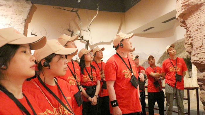 首先,大家來到本次活動的始發站——紅旗渠紀念館,實地參觀了當年修渠時留下的珍貴照片。在講解員的講解下,通過千年旱魔、紅旗yin領、太行豐碑、山河巨變、精神永恒五個展廳回顧了當年的修渠歷程。一幅幅生動的歷史照片記錄了林州百姓艱苦奮斗的堅毅精神;一件件珍貴的修渠文物無聲地表達了林州百姓人定勝天的頑強意志,展現了黨帶領林州人民十年奮戰、改造河山的震撼場景,也唱響了紅旗渠的zui強音。