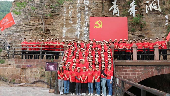 隨后,大家沿著紅飄帶來到了紅旗渠總干渠的咽喉工程——青年洞,通過聽講解、觀實物、看實景、走長渠等,切身實地感受紅旗渠精神的深刻內涵。走在半個世紀前完工的紅旗渠邊,山壁上的一幅幅題字、一幕幕修渠場景次第呈現,每個人都不禁感嘆先輩們“自力更生、艱苦創業、團結協作、無私奉獻”的紅旗渠精神。通過實地的觀摩和學習,大家真切地感受到了林州人民創業的艱苦,加深了對紅旗渠精神的認識和理解,也更加堅定了傳承和發揚這一精神的信念。