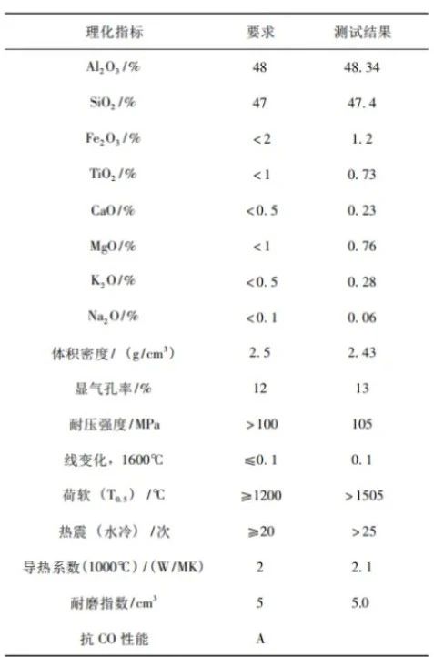 表1 氯化爐爐襯材料要求及測試分析結(jié)果