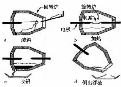 ALUREC法由丹麥阿加公司、霍戈文斯鋁業公司、曼公司三家公司聯合開發,流程圖見圖4。主要流程為裝料、加熱、收鋁、倒出浮渣,該法主體設備為回轉式熔化爐,還可以用純氧作助燃劑,升溫速度快,可以有效減少燃燒過程產生的有機氣體,煙塵被煙罩吸收二次利用處理。此法優點在于機械化程度較高和運行環境好;但金屬回收率要比炒灰低,一般在93%左右,且產生的殘余鋁灰還需進一步處理。