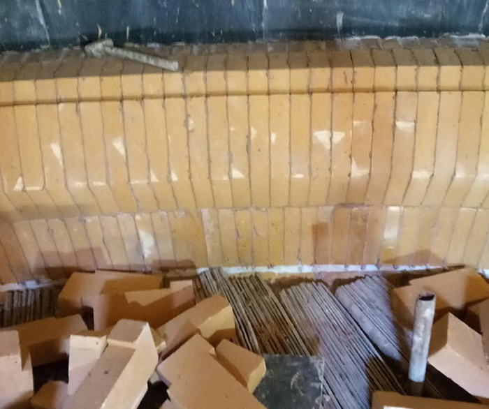 砌筑時,應將耐火泥均勻涂抹在基礎面上,再將耐火磚按照設計圖紙放置在基礎面上,確保位置準確、平整。